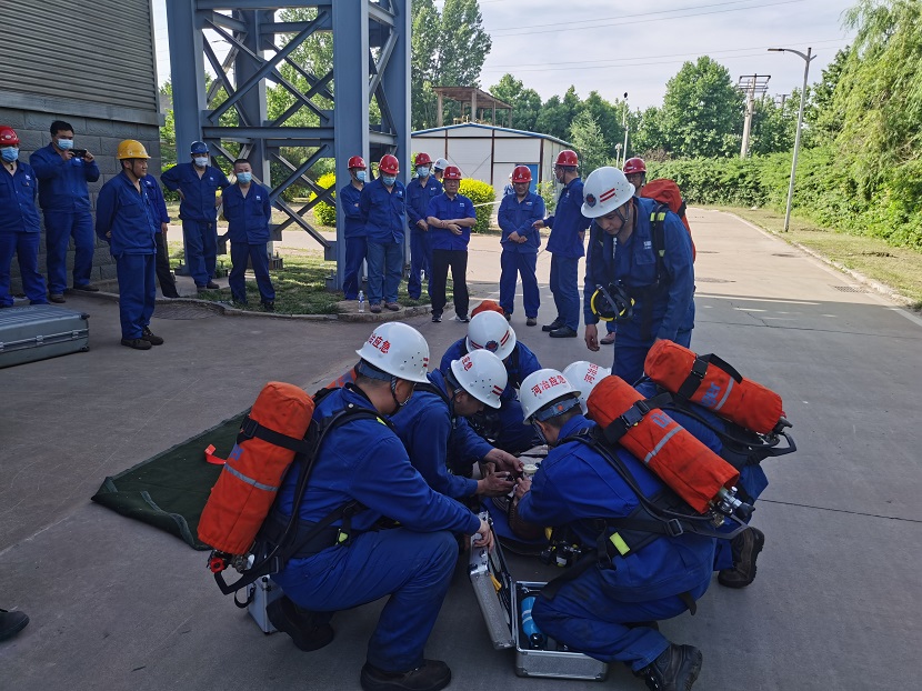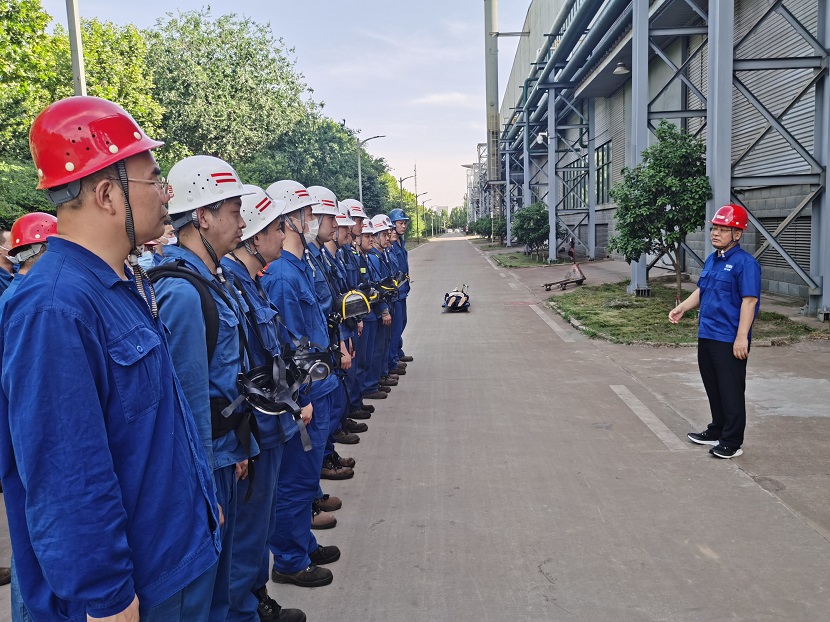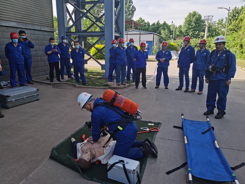本次演練在公司安全總監(jiān)侯國棟的一聲令下,演練拉開序幕,由公司應急救援隊組成的現(xiàn)場作業(yè)組、應急救援組、疏導警戒組、醫(yī)療救護組等4組演練人員開展救援工作,相繼展示了事故發(fā)生后的事故報告、現(xiàn)場秩序維護、氣體檢測、救援三腳架搭設、安全防護裝備佩戴、通風設備使用、人員救護等應急處置全過程。
