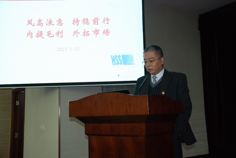 公司總經(jīng)理米永旺向大會作了題為《風(fēng)高浪急 持穩(wěn)前行 內(nèi)提毛利 外拓市場》的工作報(bào)告。首先報(bào)告中全面客觀總結(jié)了公司2022年各方面取得的成績,2022年公司克服了年初不盈利、疫情多次受困、大宗商品價(jià)格大幅上漲等多重困難,堅(jiān)定年初既定方針不動搖,上下同欲,完成了年度任務(wù),既凝聚了人心,提振了士氣,更贏得了客戶的信任!同時(shí)指出了不足和存在問題,其次報(bào)告中闡明了2023年公司的工作目標(biāo)、工作計(jì)劃、重點(diǎn)工作和指導(dǎo)思想,并提出應(yīng)對措施,特別強(qiáng)調(diào)公司將堅(jiān)定不移深入貫徹二十大精神和中央經(jīng)濟(jì)工作會的要求,越到困難之時(shí),越要保持戰(zhàn)略定力,咬定青山不放松,緊緊盯住公司“十四五戰(zhàn)略規(guī)劃”目標(biāo),堅(jiān)持合規(guī)經(jīng)營,防范化解各類風(fēng)險(xiǎn),推動公司、乃至行業(yè)可持續(xù)高質(zhì)量發(fā)展。外部環(huán)境不由我,生存發(fā)展在自己!唯有穩(wěn)住自己,方能求得生存!唯有堅(jiān)定信念,方能尋得發(fā)展!