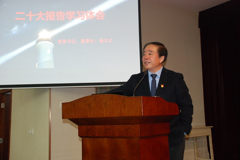 最后楊總結(jié)合自身二十大報(bào)告學(xué)習(xí)的體會,給大家上了一堂黨課,他從關(guān)于五個(gè)牢牢把握、關(guān)于三個(gè)務(wù)必、關(guān)于高質(zhì)量發(fā)展等三個(gè)方面進(jìn)行了闡述和解讀,生動精彩,很有指導(dǎo)意義,大家受益匪淺。