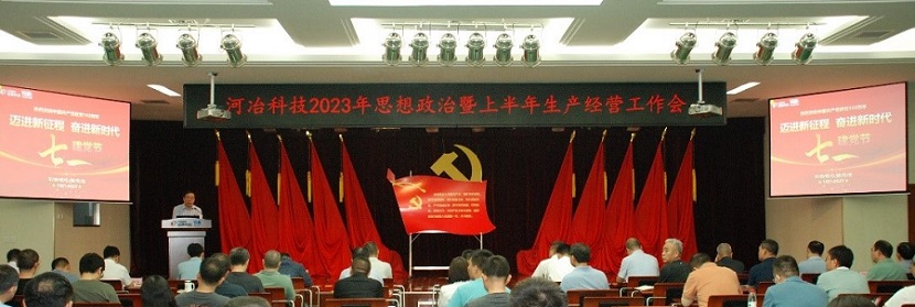 在建黨102周年之際,河冶科技2023年思想政治暨上半年生產(chǎn)經(jīng)營工作會(huì)于7月7日在公司多功能廳召開。參加會(huì)議的有公司黨委委員、經(jīng)理層、中層干部、黨支部書記、部門骨干、采購營銷人員、團(tuán)委委員和子公司河冶住商黨總支委員及經(jīng)理層人員等共計(jì)130余人。會(huì)議由公司黨委副書記、常務(wù)副總經(jīng)理梁敬斌主持。